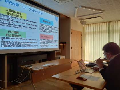 発表が続きます。ランチルームから、Zoomで発信しています。それぞれ、ブレークアウトルームに入り、視聴したい研究を視聴しに来るというリモート研修会となっています。