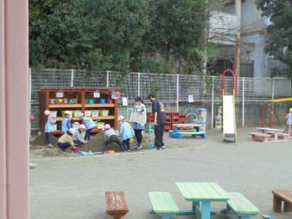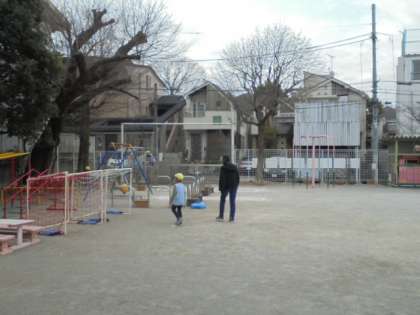 幼稚園もにお世話になりました。園庭で一緒に遊んでいる様子です。