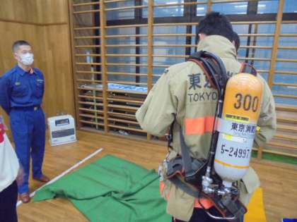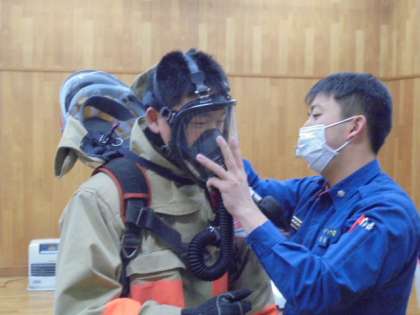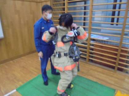 消防署では、仕事の説明とお話しの後に、実際に制服やボンベ、酸素マスクなどを着用させていただいたようです。得難い体験をさせていただきました。実際に火災に向かう時の消防士さんたちの心構えを理解することができたことと思います。
