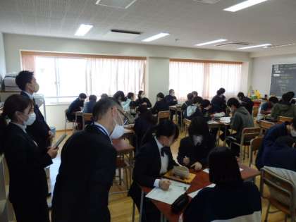 学び舎の小学校の先生方と合同研修会を行いました。5校時に授業を参観していただき、校長先生のご挨拶後に、研究発表・意見交換を行いました。生徒の皆さんも久しぶり小学校の先生方と会うことでき、とても嬉しそうでした。研究発表では、「キャリア教育・未来デザイン教育 〜キャリアプランニング能力の向上を図る「探究的な学び」の実現〜」について、発表をしました。