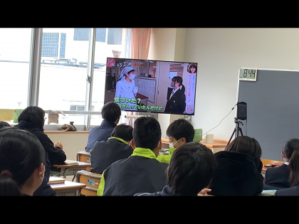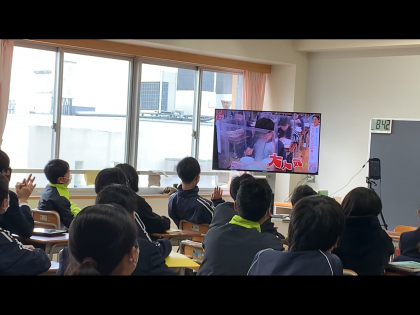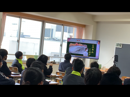 15日の朝、教室は、深中の給食風景がテレビで放映されて大盛り上がりでした。3年生の「毎日がレストランのよう」「1〜4時間目は、給食のことだけを考えてしまっています」というコメントも採用されており、番組の時間短縮が残念でしたが、嬉しいニュースとなりました。(写真は、取材を受けた1年1組の朝学活の様子です)
