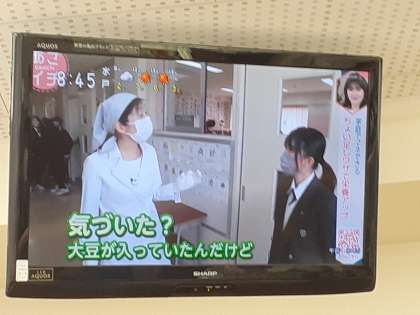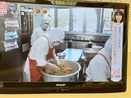 また、鶏肉に大豆を加えて撹拌している調理師さんが写し出され、鶏つくねに大豆が入っていることを知らなかった生徒達はびっくりしていました。