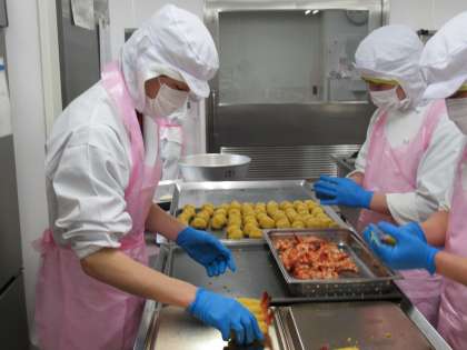 本校の美味しい給食を作ってくださる給食室での体験ができたことも大きな収穫でした。加瀬先生から「野菜を切る手際も良く、大変助かりました」というお褒めの言葉を頂きました。