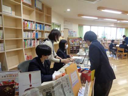 本校の学校図書館の司書さんにも大変お世話になりました。図書の整理にはじまって、休み時間の貸し出し受付など、大活躍でした。