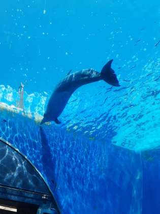 水族館の入り口です。水族館では、イルカがのんびり泳いでいました。