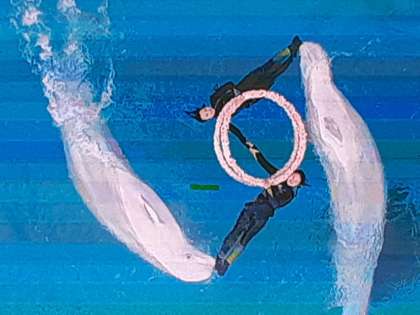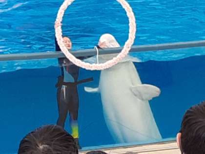 これから白イルカたち等、海の動物たちのショーが始まります。