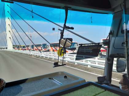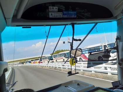延々と続く他校のバス渋滞の脇を通って帰路に着きます。早めの集合にみんなが協力してくれたお陰です。