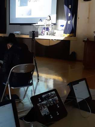 今年の夢フォーラムは、アリーナ会場から、1・2年生各教室に配信され、スピーカーの方々には、それぞれの教室の様子がきちんと伝わるようにモニターを設置してもらいました。ICT支援員の方々に、セッティングをお願いしていて、毎年バージョンアップされている状態になっています。