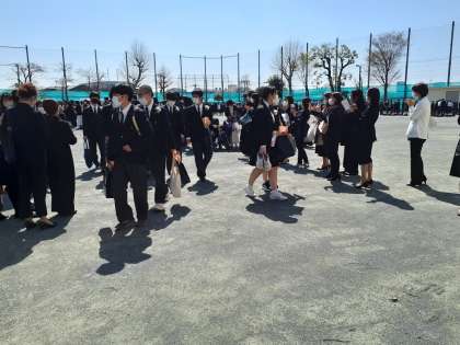 1年生は教室での参列となりましたが、送り出しは、2年生と共に無事に見送ることができました。教室での別れの時間を終えて、校庭に繰り出しました。