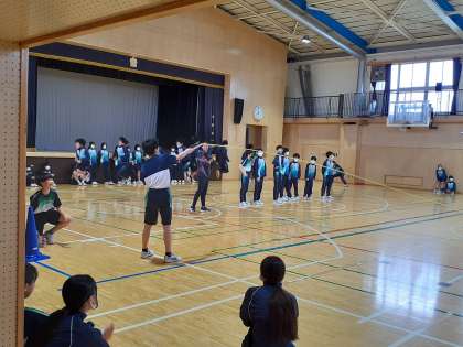 2年生は、アリーナで大縄跳びの練習を張り切っ行っていました。アリーナでの大縄跳びは、実際の校庭とは違い、とても快適そうでした?。