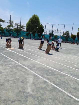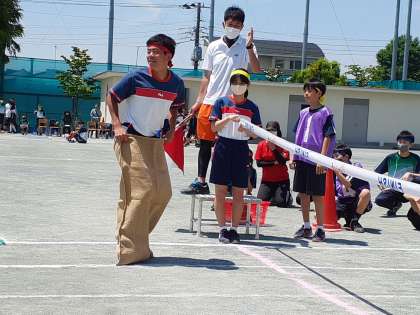 2年生になると、4種目走にとても慣れていて、かなり早くゴールしています。後ろを確認する余裕もあります?