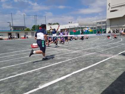 短距離走も全力!結審の係も全力、競技が終わり退場していきます。