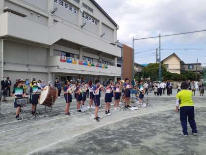 吹奏楽部の演奏で、校歌を歌う事が出来るのも深沢中ならでは。