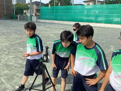 生徒の飛んでいる様子はあらかじめiPadで撮影します。この撮影されたものはな、なんと10秒ほど遅れて映し出されます。
