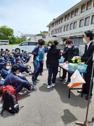 トイレ休憩をすませ、これから休暇村の方にオリエンテーリングの説明を受けます。ゼッケンやしおり、地図などをコースごとに受け取ります。