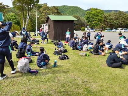 引き続き、続々とゴールしています。早くゴールした皆は、まったり芝生にて過ごしています。
