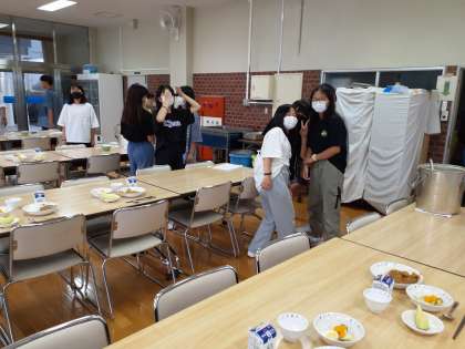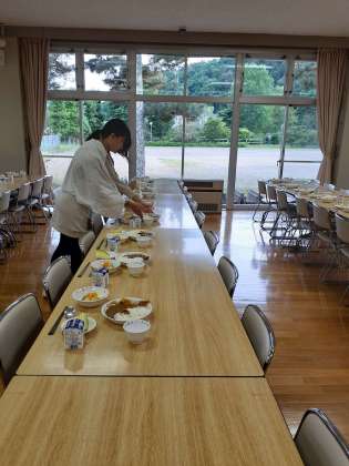 食卓は、パーティションはありませんが、全員が前向きで食べるようになっています。