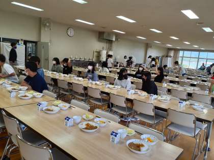 食事係が配膳を終えて、自席に着きます。