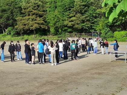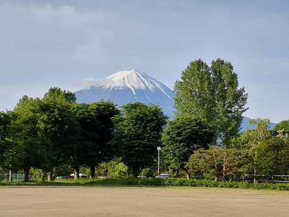 朝礼が始まろうとしています。今朝の富士山も、大変美しい姿を見せてくれています。ホトトギスなど、小鳥のさえずりも。自然豊かです。