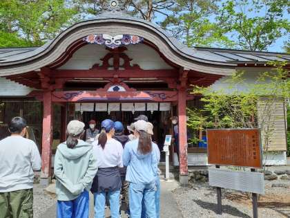 この班は、まず、胎内神社の中、船津胎内樹型を見学します。それぞれ、ルートを変えて廻ります。