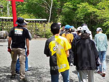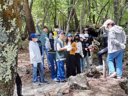 溶岩樹型の散策も、コースに分かれます。こちらの班は、まず、船津胎内樹型の中を確認してきました。