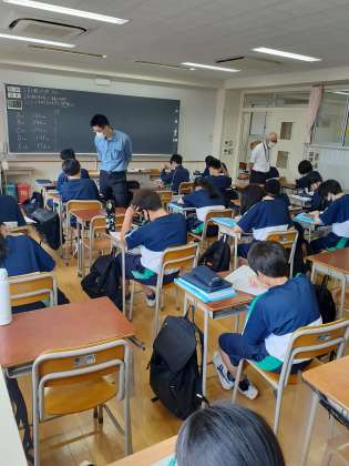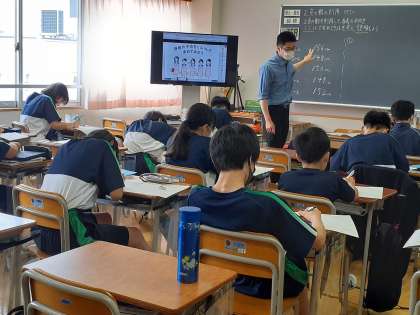 数学の授業研究がありました。最初にQubenaで配信された問題を解いてから、今日の課題に取り組みます。1年生は、積極的に授業に参加しています。