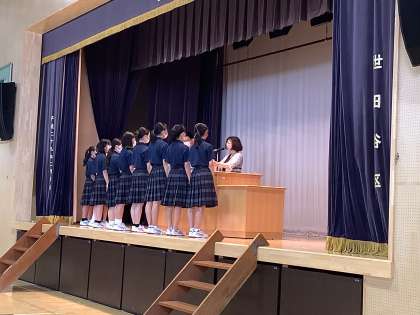 全校生徒が揃い、校長先生のお話を真剣に聞いている姿が素晴らしかったです。