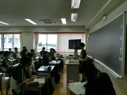 第1学年国語科ではスピーチ発表に取り組んでいます。自身の興味に基づく身近な題材で語っています。