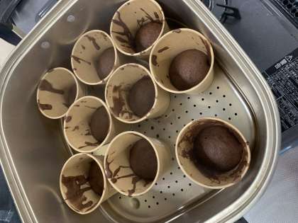 順番通りに混ぜていくと美味しいココア蒸しパンに仕上がりました。
