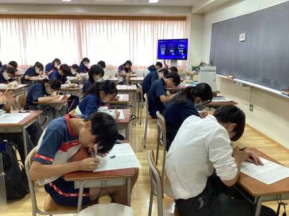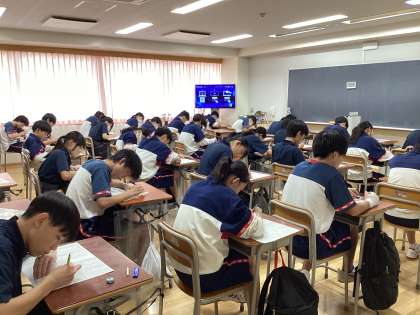 夏休み明けのスペリングコンテストが行われました。みんな真剣に書きまくっています。今日は、朝早く来て勉強に励む姿も見られました。良い結果が出るといいですね。