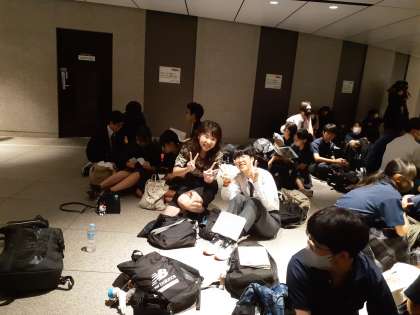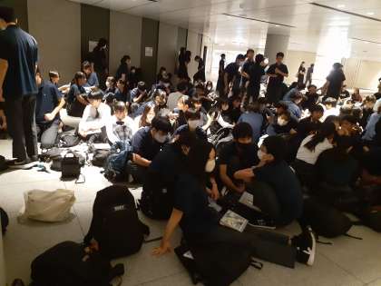 出発式が終わりました。トイレをすませて移動を待っています。鈴木奏子先生もお見送りに来て下さいました。