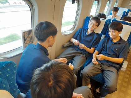 新横浜を過ぎたので、カードゲームやお話で和やかなみんなの様子です。
