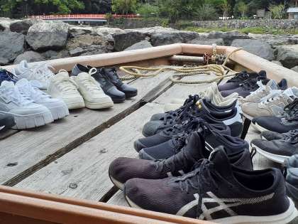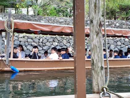 屋形船での昼食の様子です。他のクラスとすれ違うおとも楽しみです。