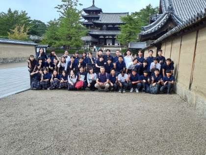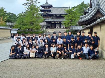 法隆寺を見学します。その前に集合写真を撮影しました。