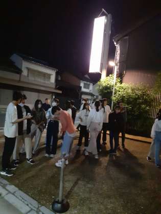 一泊目の奈良ニューわかさで夕食を終えて、ナイトウォークに出掛けます。1組から出発します。