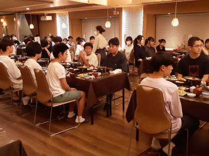 宿の方から、宿舎での注意事項などの説明がありました。真剣な眼差しです。