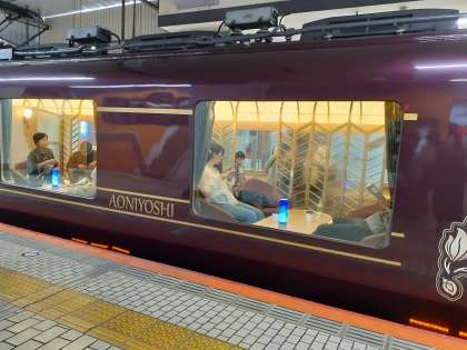 近鉄京都駅で「あおによし」という奈良の雰囲気が伝わる車両が出発するところでした。