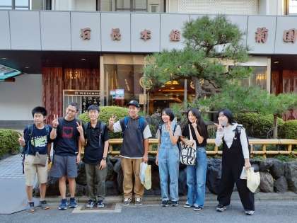 予定通りに京都のお宿、石長松菊園に到着した班です。
