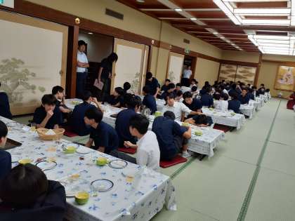 食事係によるご馳走さまの前に、実行委員長のご挨拶がありました。おめでたい。
