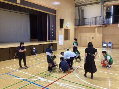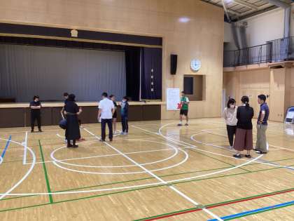 今日は体育館で先生とバレー部員で一緒に席の配置を確認しました。