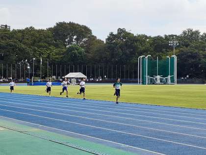 1年生男子1500メートル第二レースに出場します。二番手で、先頭を追いかけます。