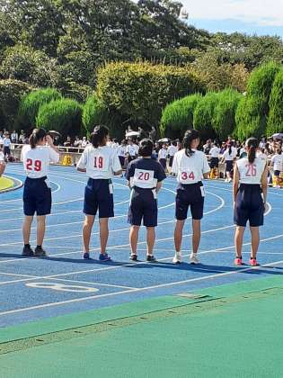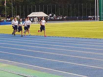 共通女子800メートル第一レースが始まります。先頭集団につけています。