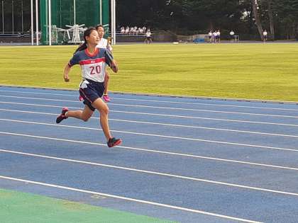 共通女子4×100mリレーが始まります。三年生女子が出場します。見事トップでゴールしました。