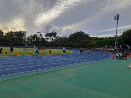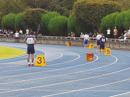 共通男子4×100mリレーが始まりました。深沢中は、第四レースです。