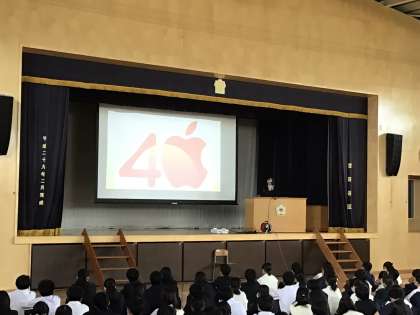そして、明日は開校記念日、校長先生から深沢中は地域の方の熱い思いで「深沢中学校」という名称になったことや、Appleと研究で先生達も挑戦していることなどの話がありました。