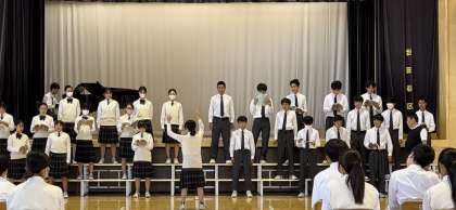 本日から合唱練習が始まりました。各クラス、割り振られた練習場所で、実行委員を中心に練習に励んでいました。また、本日は第2学年が学年リハーサルを行いました。各クラス、本番通りの流れで課題曲を披露しました。さらに練習を重ね、素晴らしい合唱を聴かせてくれることを楽しみにしています。
