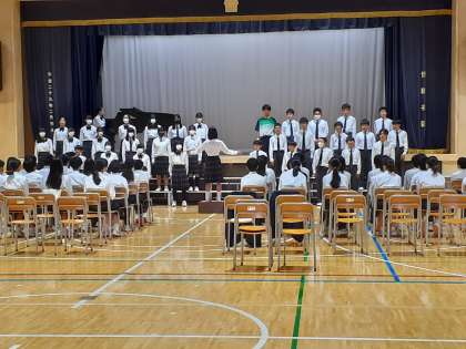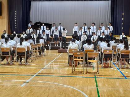 続いて2組、1組が歌います。どのクラスも最初は緊張していましたが、伸びやかに歌っていました。