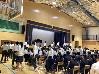 5時間目に、合唱コンクールに向けて3先生が体育館でリハーサルを行いました。