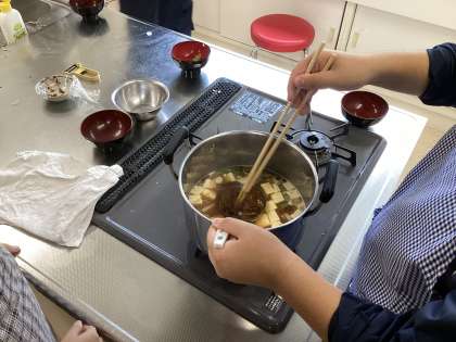 3種類の味噌でグループごとにつくったものを食べ比べしています。