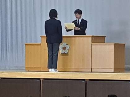 図書委員会からは、多読賞の表彰がありました。図書委員長より、表彰状が渡されました。